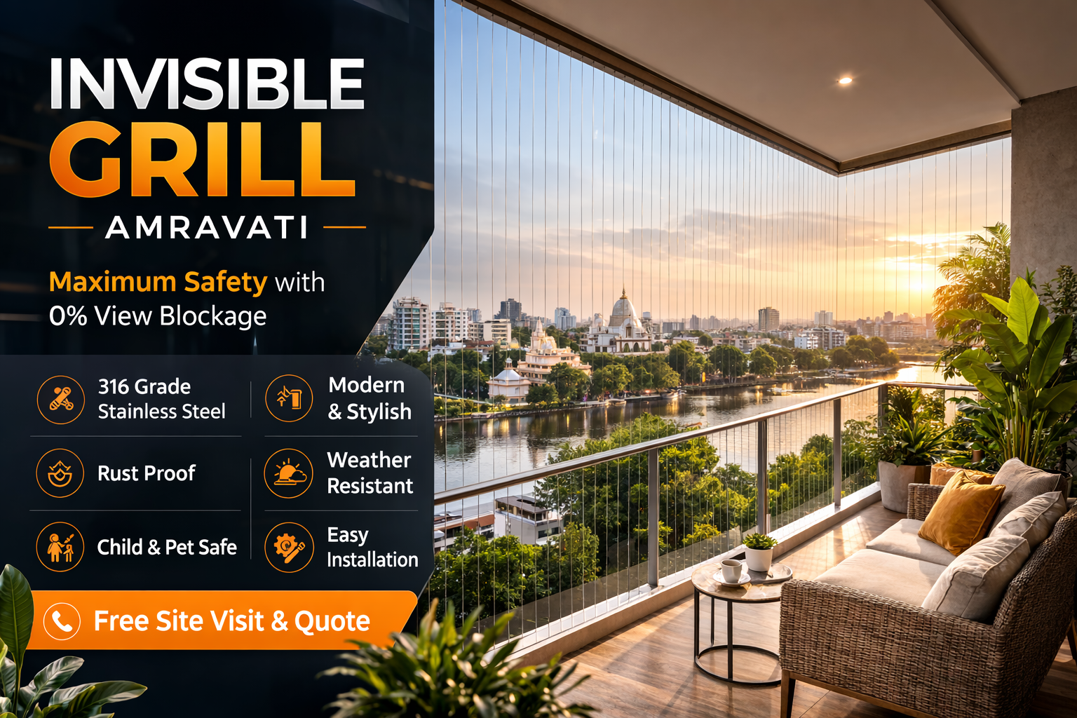 Call us today for a FREE site visit and quotation for invisible grill installation in Amravati. Get the best price, certified installation, and 5-year warranty — all in one call. Serving all areas of Amravati, Maharashtra.